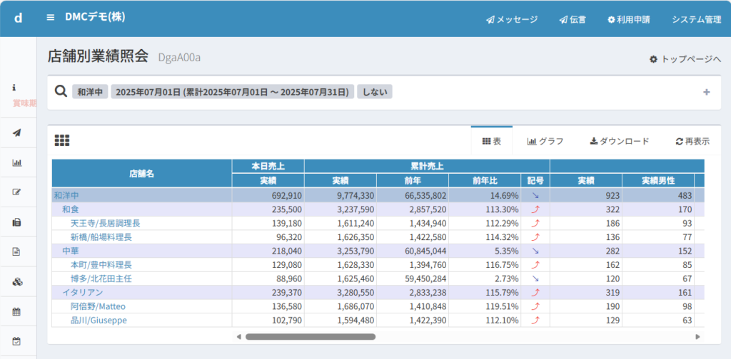下図は和洋中という業態別に集計した分析パターンです。