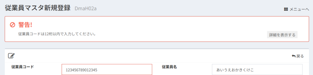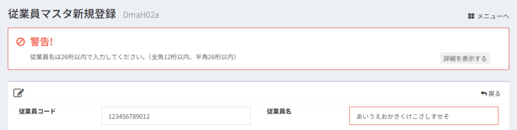従業員名は全角12文字または半角26文字以内で入力してください。