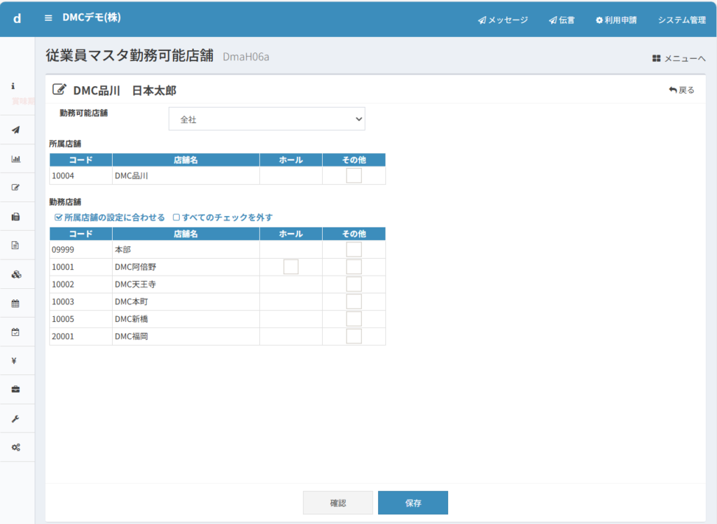 - 勤務店舗 勤務可能な店舗を選ぶ(労務管理の機能)