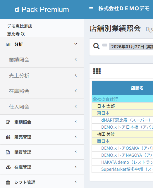 dPackでは、従業員ごとに使用できる機能を制限することができます。例えば、売上分析だけをする人には、在庫管理やシフト管理などの機能をメニューに表示すると間違って変更してしまうことが無いように、メニューそのものを表示しないように設定できます。