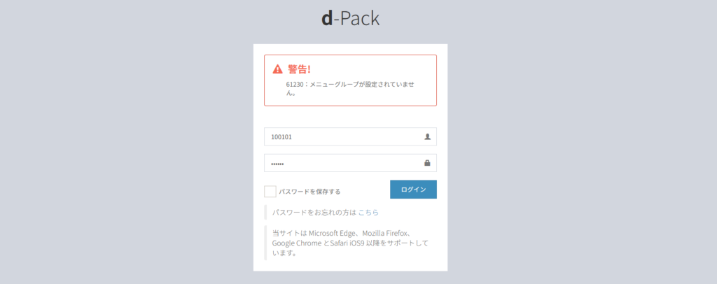 この状態では、日本 太郎さんがログインしたときに、どのメニューを使用するのか設定がされていませんので、ログイン時にエラーが表示されます。
