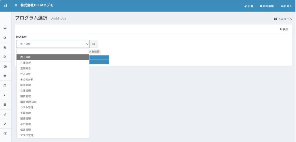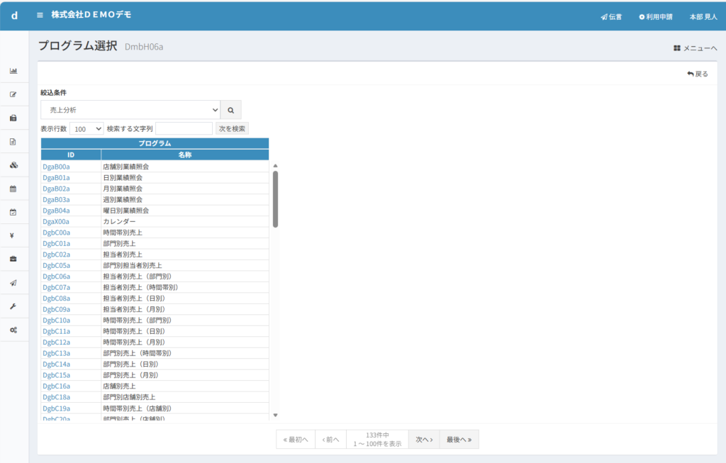 絞込条件を売上分析にしてまた虫メガネをクリックします。すると、dPackで使用できるすべてのプログラムが表示されます。